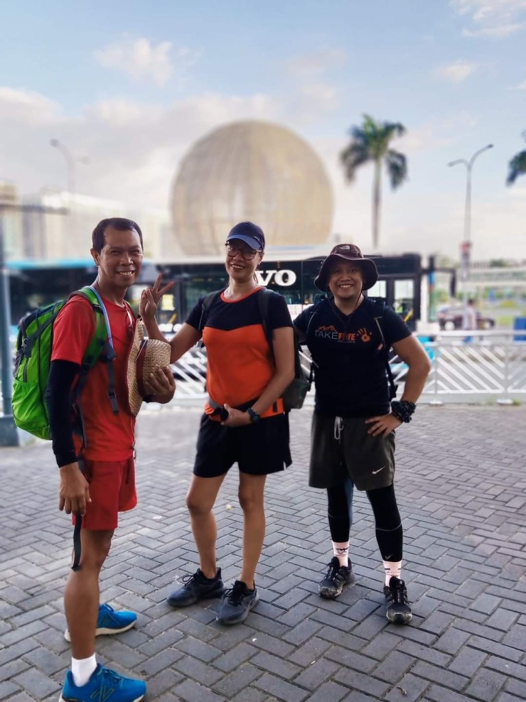 Alongside Liz Vizcarra and Sir Lito, the three of us embarked on a grueling 42-KM and 12-hour journey, commencing from EDSA Shrine, journeying to Monumento in Caloocan, traversing Rizal Avenue to reach Luneta Park, and then onward to the Mall of Asia (MOA) before returning to EDSA Shrine.