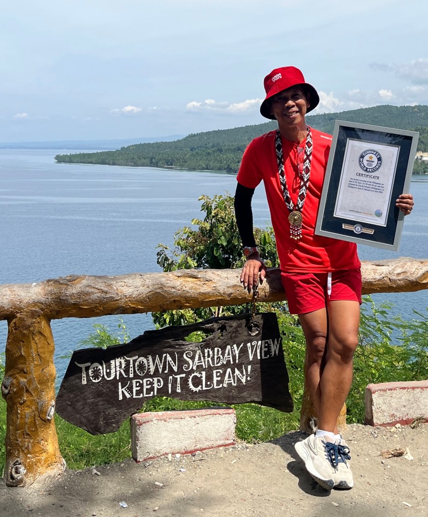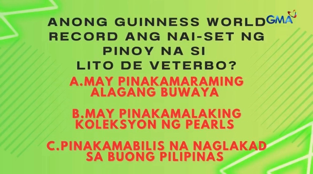 Lito De Veterbo’s Guinness record for the fastest crossing of the Philippines on foot has found its way to a quiz show on TV in the Philippines.